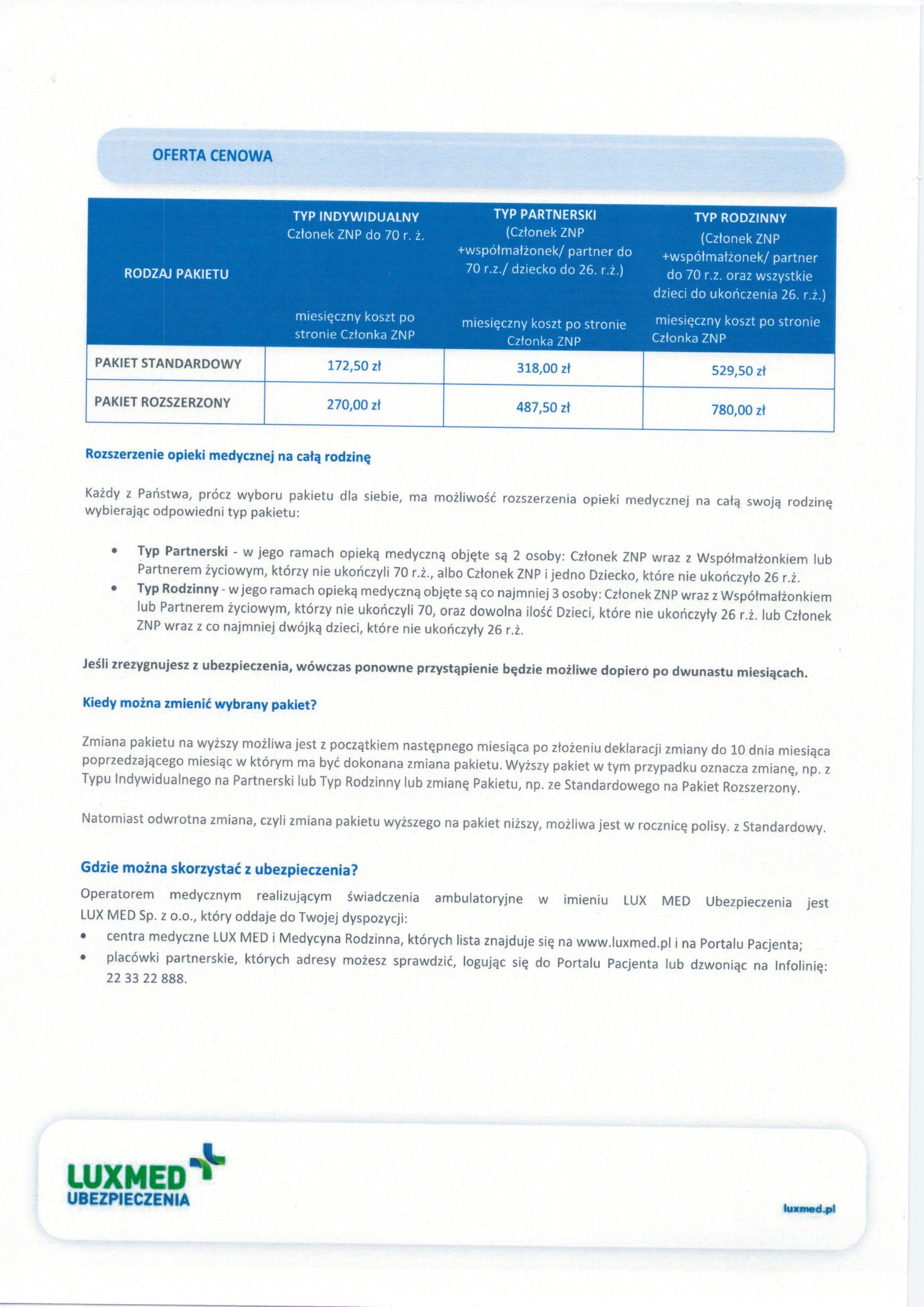 Materiał informacyjny – opieka medyczna LUXMED
